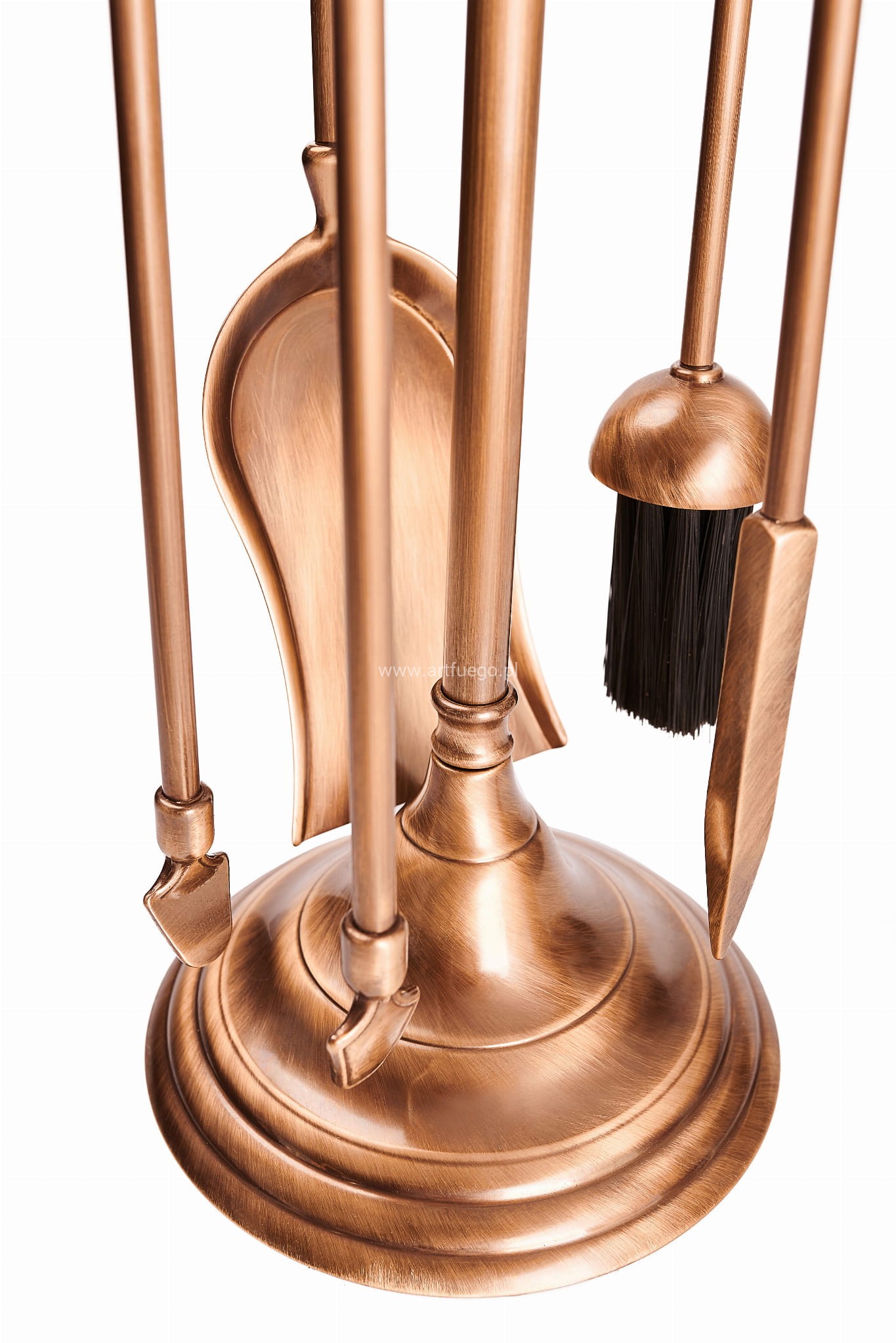 Wysokiej jakości zestaw akcesoriów do Twojego kominka od renomowanego producenta ekskluzywnej linii – ArtFuego. Ten poręczny i praktyczny zestaw kominkowy, wyprodukowany we Włoszech z mosiądzu patynowanego, jest niezbędny dla każdego posiadacza kominka lub pieca kominkowego. Wersja patynowana sprawdzi się we wnętrzach urządzonych w stylu vintage, rustykalnym, a nawet klasycznym. Zestaw składa się z czterech elementów: miotełka, szufelka, pogrzebacz oraz szczypce, zawieszonych na stojaku o okrągłej podstawie. Szczotka ma ciekawy, okrągły kształt.