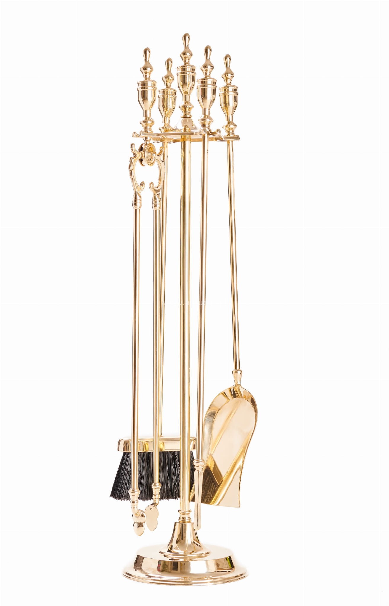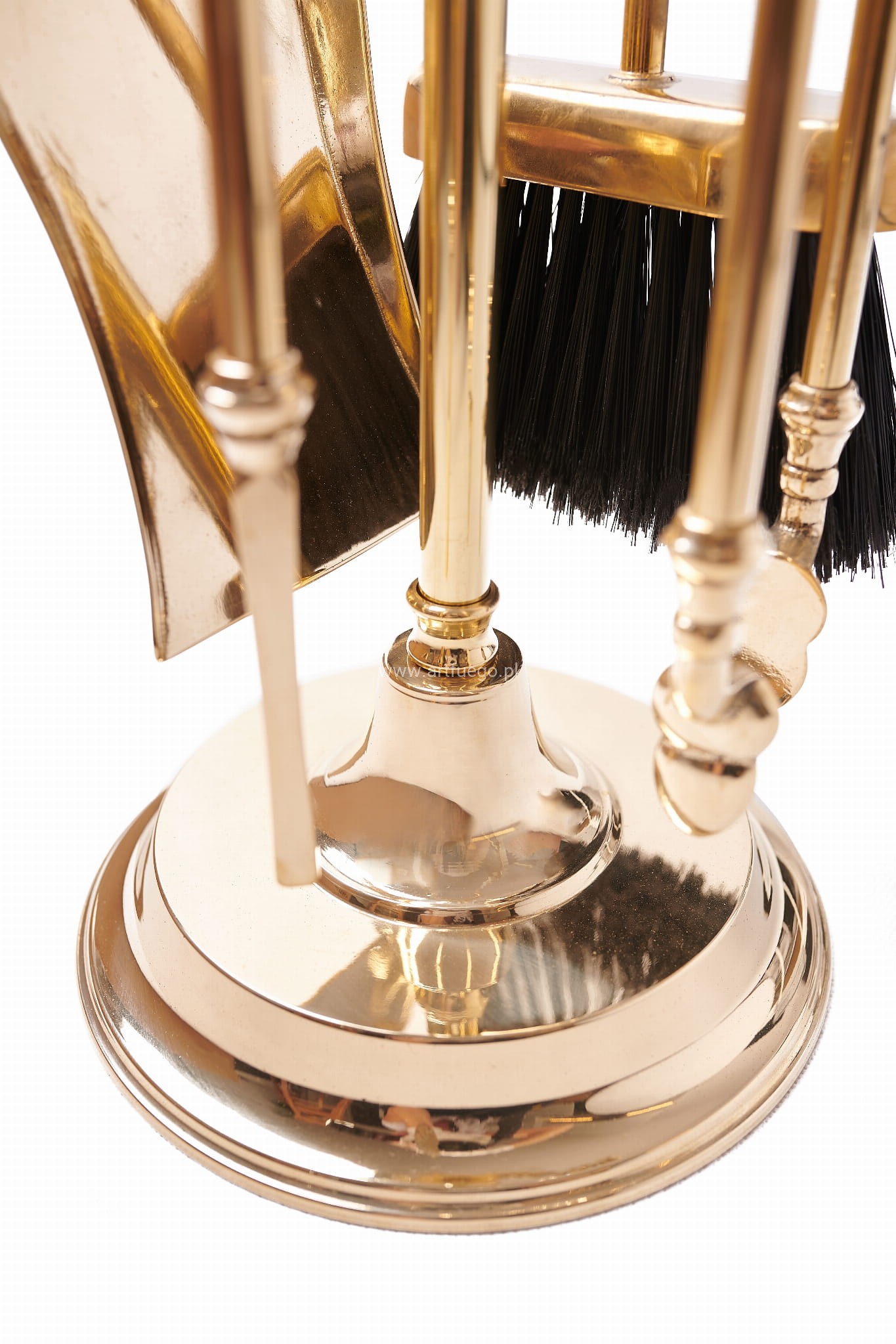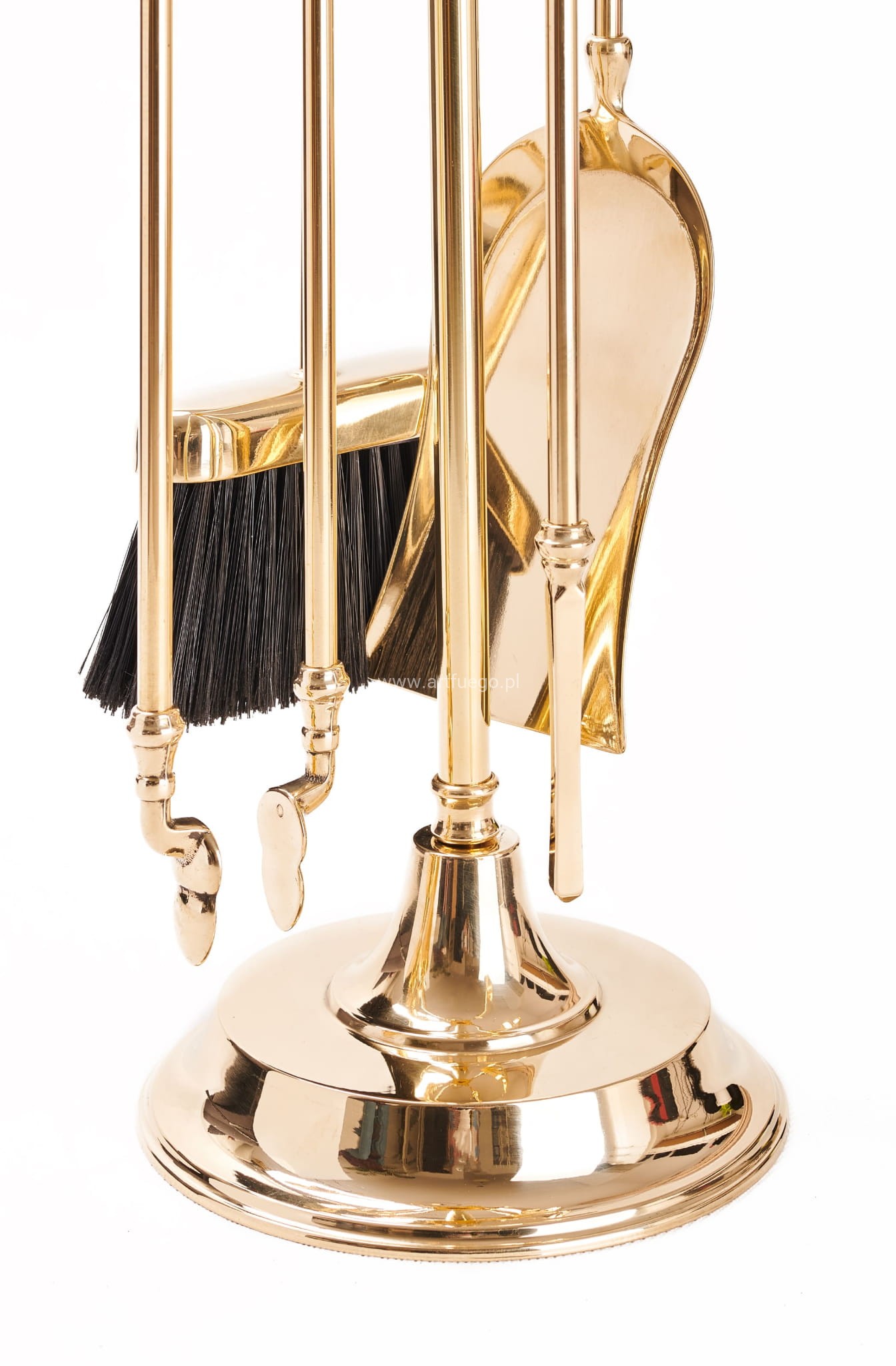 Wysokiej jakości zestaw akcesoriów do Twojego kominka od renomowanego producenta ekskluzywnej linii – ArtFuego. Ten okazały i praktyczny zestaw kominkowy jest niezbędny dla każdego posiadacza kominka i pieca kominkowego. Wykonany z mosiądzu polerowanego został starannie wykończony dzięki czemu jest zarazem oryginalny i elegancki. Zestaw składa się z czterech elementów: miotełka, szufelka, pogrzebacz oraz szczypce – wszystkie zakończone wygodnymi, pięknymi uchwytami o kształcie amfory, które nadają mu styl pałacowy. Całość znajduje się na stabilnej okrągłej podstawie.