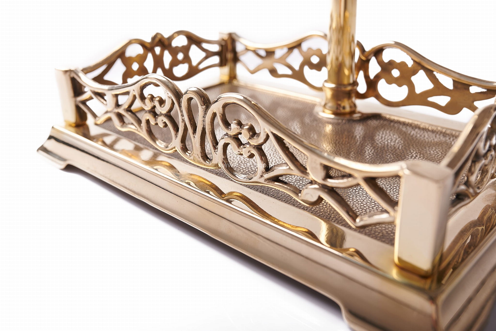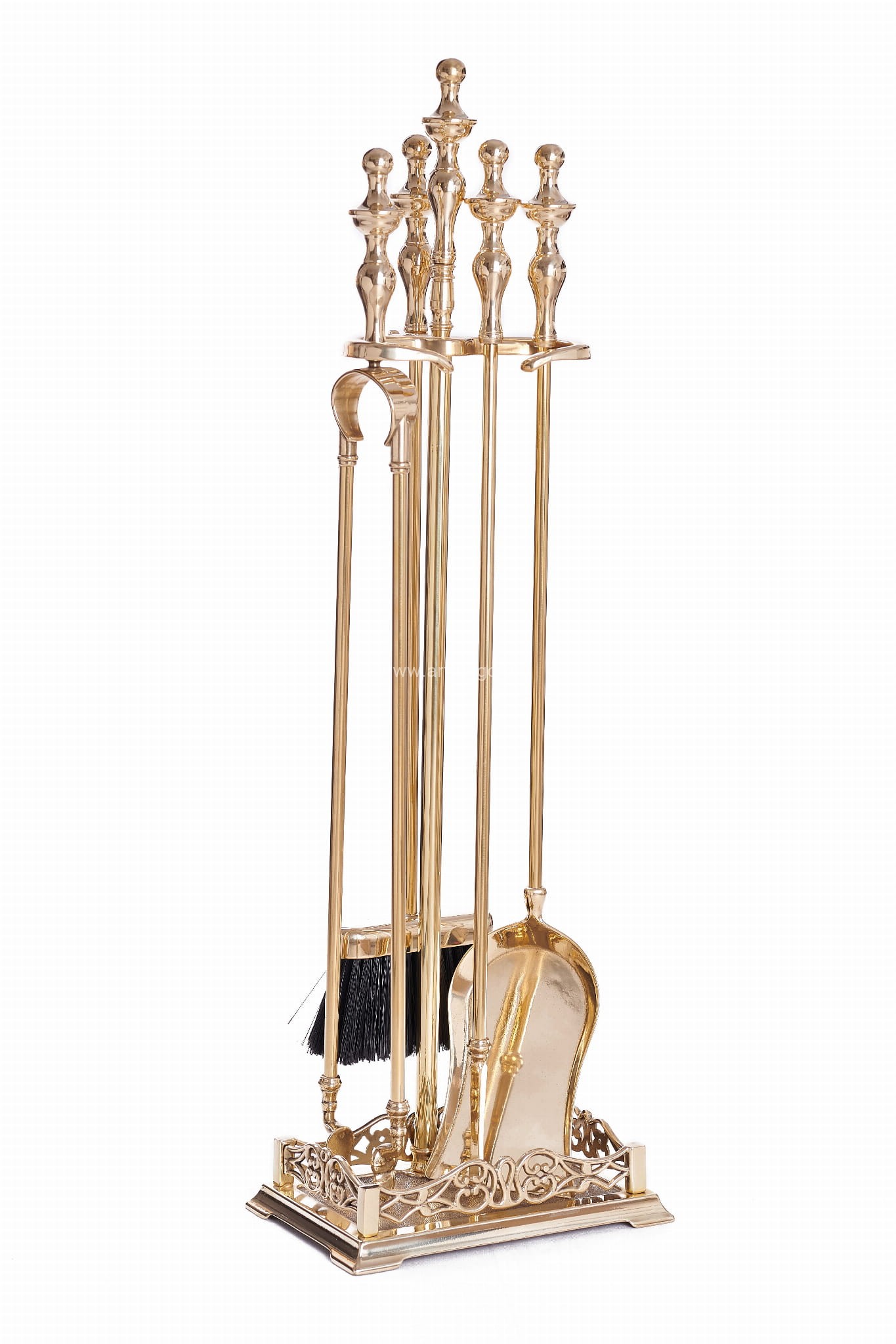 Wysokiej jakości zestaw akcesoriów do Twojego kominka od renomowanego producenta ekskluzywnej linii – ArtFuego. Ten okazały i praktyczny zestaw kominkowy jest niezbędny dla każdego posiadacza kominka i pieca kominkowego. Wykonany z mosiądzu polerowanego został starannie wykończony dzięki czemu jest zarazem oryginalny i elegancki. Zestaw składa się z czterech elementów: miotełka, szufelka, pogrzebacz oraz szczypce – wszystkie zakończone wygodnymi rączkami o stylu pałacowym. Całość znajduje się na stabilnej podstawie w kształcie prostokąta zdobionego ornamentami.