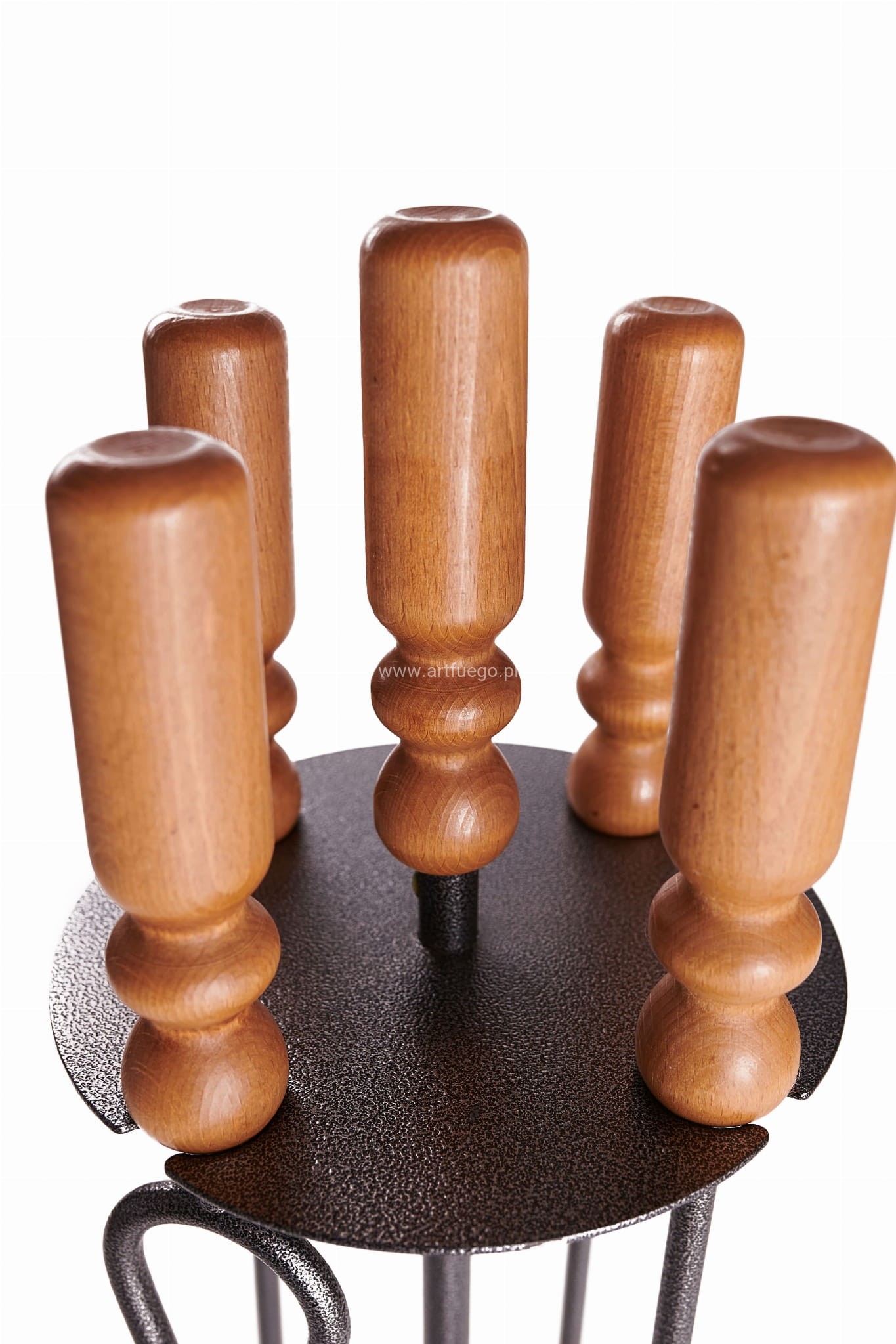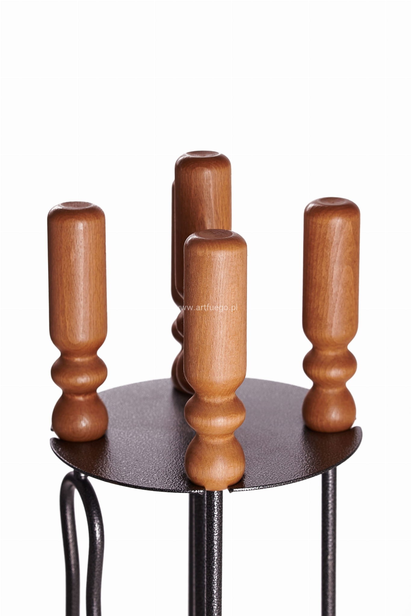 | Informacje dodatkowe (wykończenie) | zestaw 4 przyborów ze stali grafitowej młotkowej zawieszonych na stojaku z okrągłą podstawą; rączki z drewna lakierowanego |