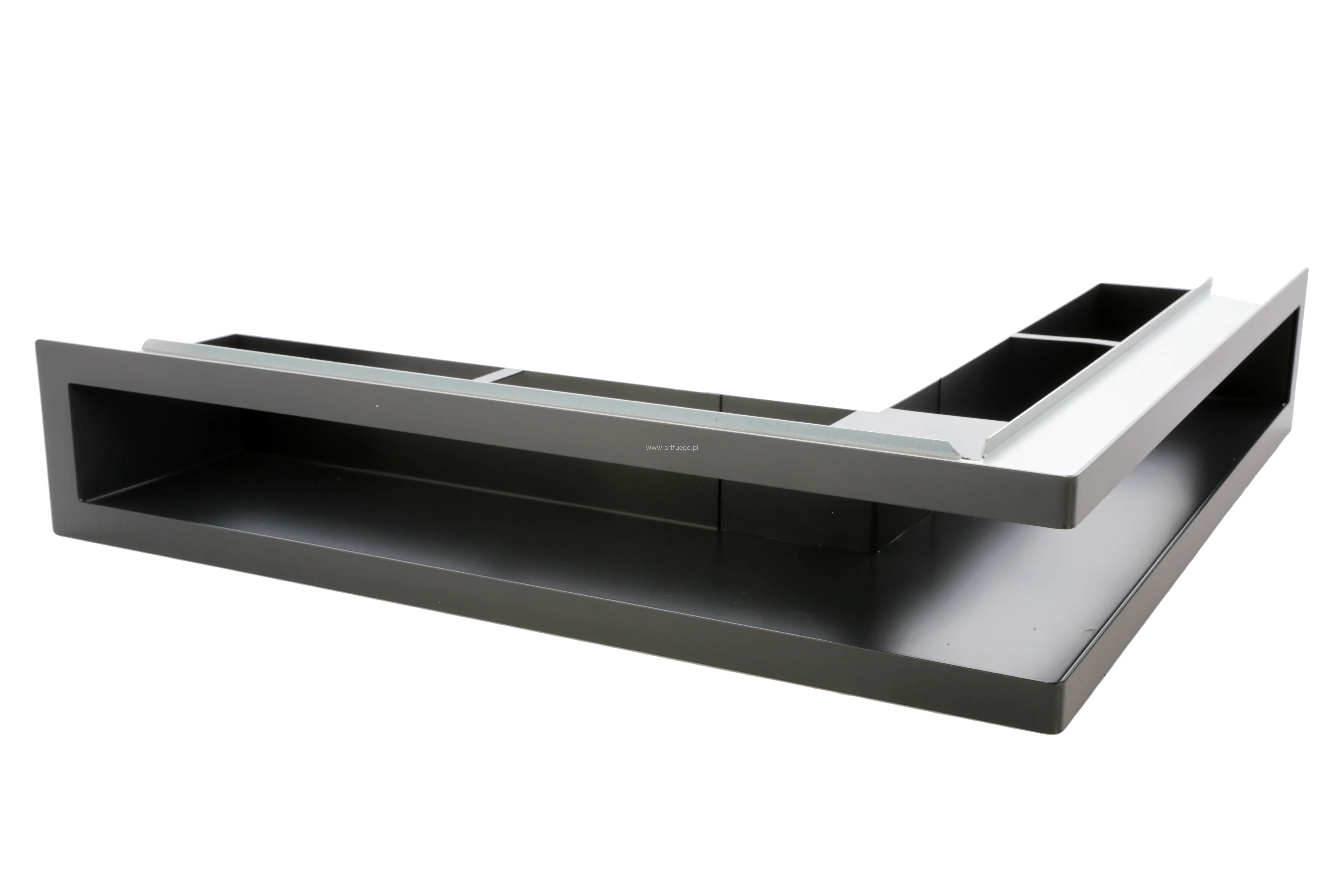 Kratki otwarte ArtFuego PRO-V OPEN - lufty wykonywane są z grubej blachy czarnej malowanej proszkowo (czoło i korpus) oraz w wersji z czołem wykonywanym z blachy chromoniklowej szlifowanej. Czoło kratki stanowi oddzielny element przyłączany następnie do kanału, co daje gwarancję gładkiej, estetycznej powierzchni i braku deformacji. Wszystkie elementy kanału są dopracowane do najdrobniejszego szczegółu, między innymi dlatego by nie znalazła się tam nawet najdrobniejsza szczelina, przez którą można byłoby dostrzec wnętrze kominka. Sposób konstrukcji kratki powoduje, iż straty ciśnienia są minimalne, a kratka jest łatwa do utrzymania w czystości.