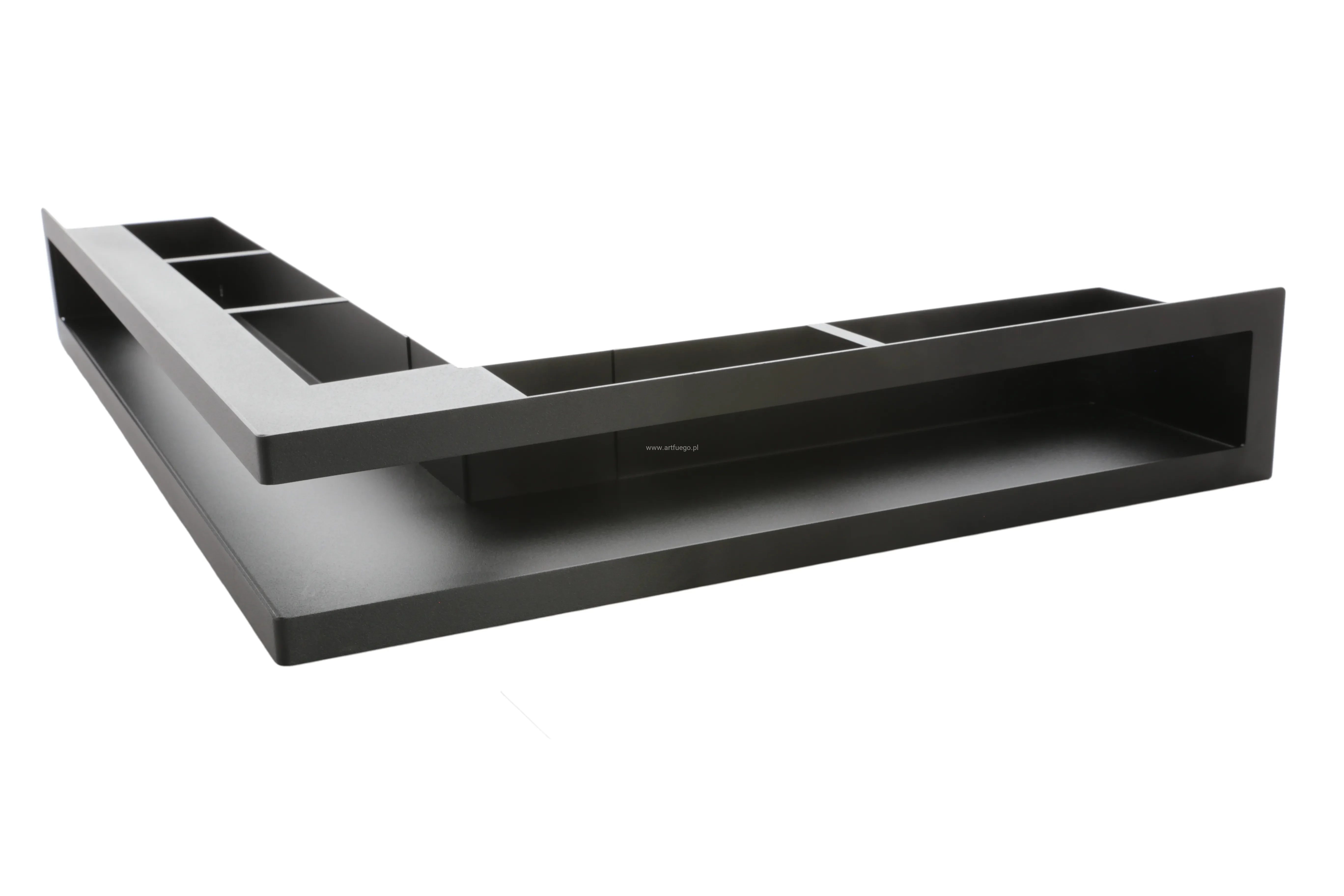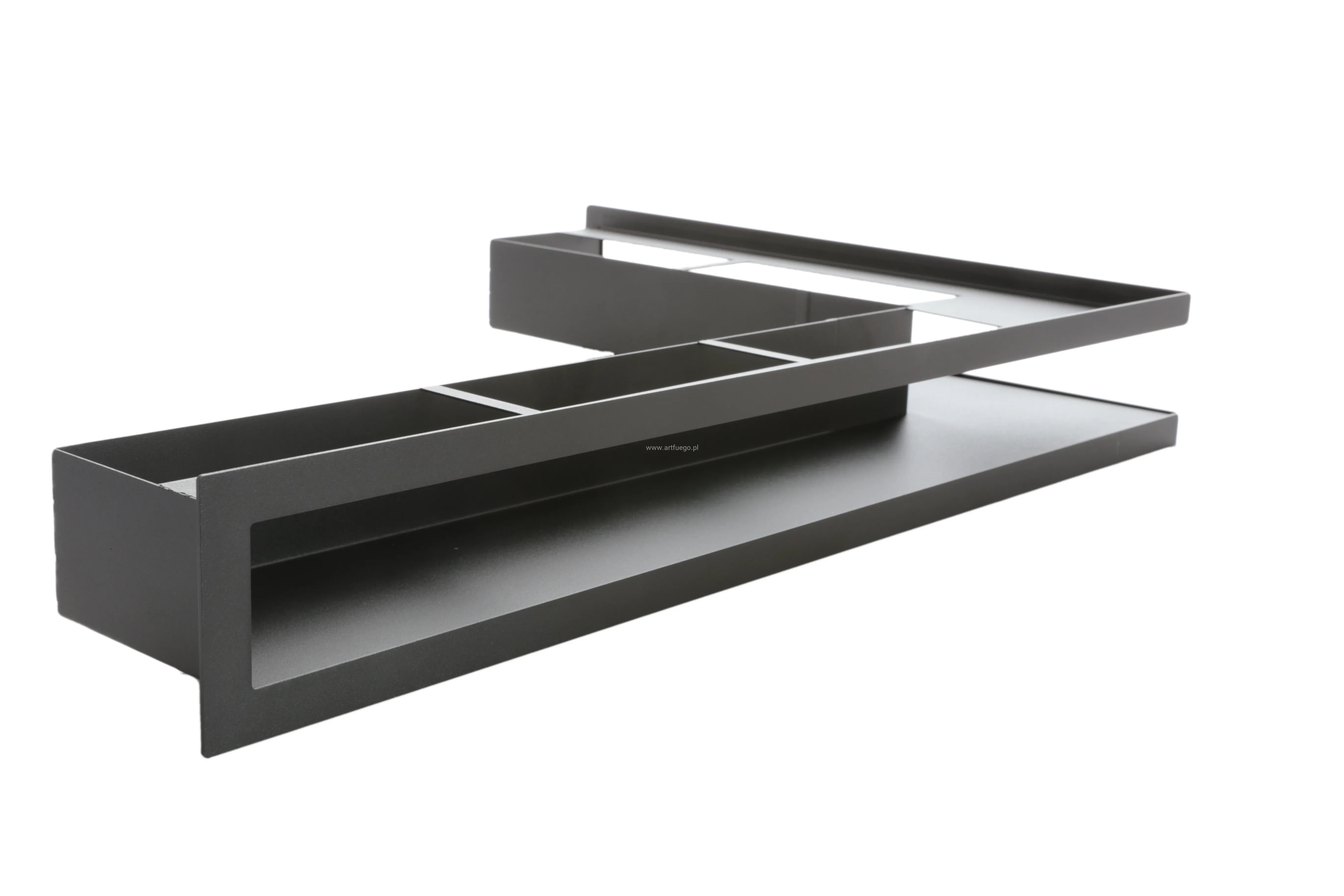 Kratki otwarte ArtFuego PRO-V OPEN - lufty wykonywane są z grubej blachy czarnej malowanej proszkowo (czoło i korpus) oraz w wersji z czołem wykonywanym z blachy chromoniklowej szlifowanej. Czoło kratki stanowi oddzielny element przyłączany następnie do kanału, co daje gwarancję gładkiej, estetycznej powierzchni i braku deformacji. Wszystkie elementy kanału są dopracowane do najdrobniejszego szczegółu, między innymi dlatego by nie znalazła się tam nawet najdrobniejsza szczelina, przez którą można byłoby dostrzec wnętrze kominka. Sposób konstrukcji kratki powoduje, iż straty ciśnienia są minimalne, a kratka jest łatwa do utrzymania w czystości.