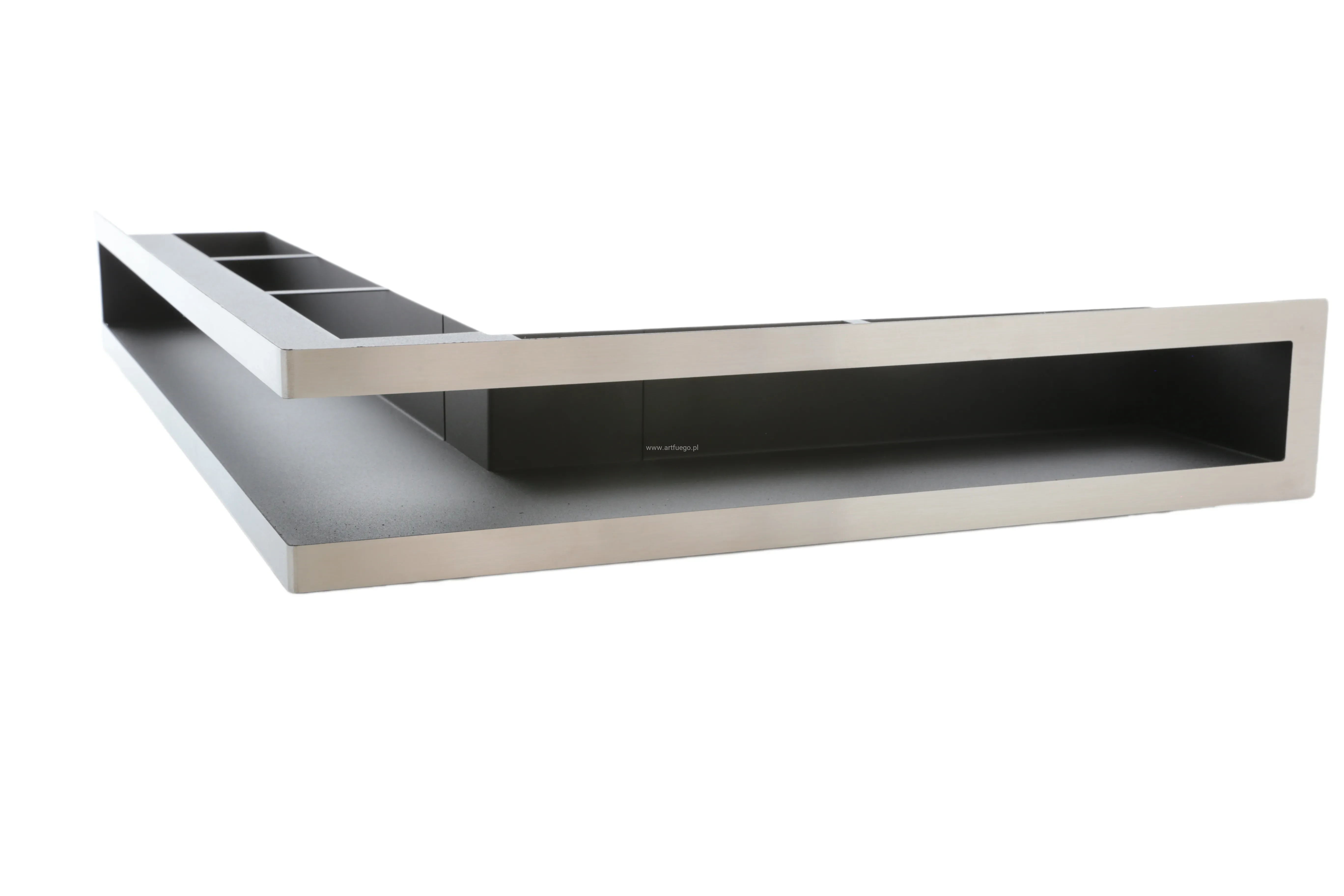 Kratki otwarte ArtFuego PRO-V OPEN - lufty wykonywane są z grubej blachy czarnej malowanej proszkowo (czoło i korpus) oraz w wersji z czołem wykonywanym z blachy chromoniklowej szlifowanej. Czoło kratki stanowi oddzielny element przyłączany następnie do kanału, co daje gwarancję gładkiej, estetycznej powierzchni i braku deformacji. Wszystkie elementy kanału są dopracowane do najdrobniejszego szczegółu, między innymi dlatego by nie znalazła się tam nawet najdrobniejsza szczelina, przez którą można byłoby dostrzec wnętrze kominka. Sposób konstrukcji kratki powoduje, iż straty ciśnienia są minimalne, a kratka jest łatwa do utrzymania w czystości.