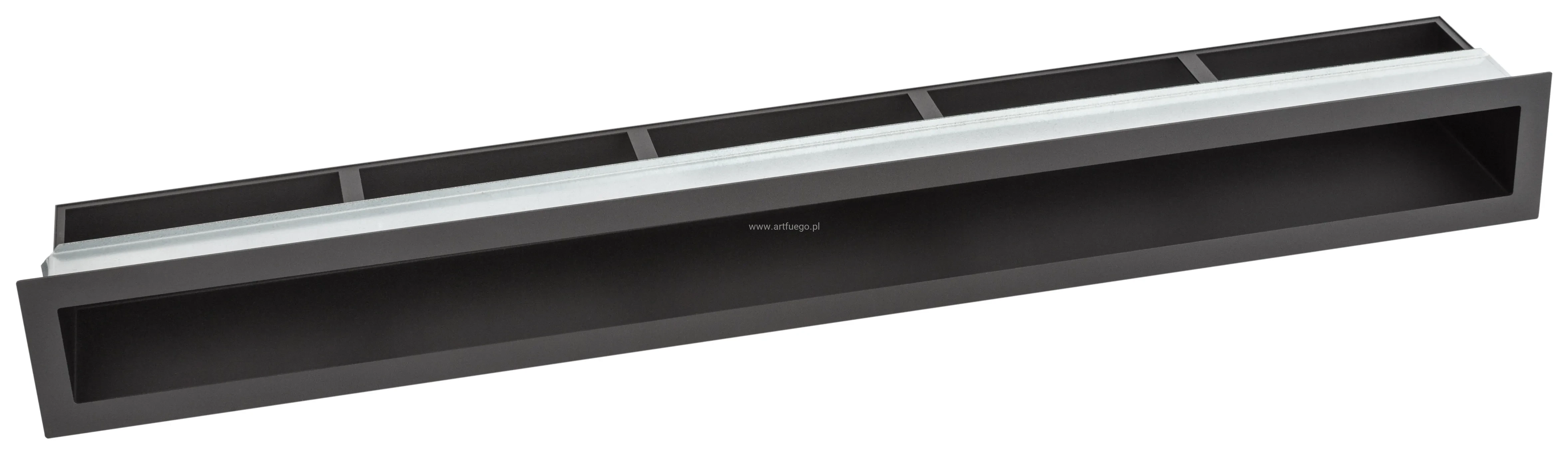 Kratki otwarte ArtFuego PRO-V OPEN - lufty wykonywane są z grubej blachy czarnej malowanej proszkowo (czoło i korpus) oraz w wersji z czołem wykonywanym z blachy chromoniklowej szlifowanej. Czoło kratki stanowi oddzielny element przyłączany następnie do kanału, co daje gwarancję gładkiej, estetycznej powierzchni i braku deformacji. Wszystkie elementy kanału są dopracowane do najdrobniejszego szczegółu, między innymi dlatego by nie znalazła się tam nawet najdrobniejsza szczelina, przez którą można byłoby dostrzec wnętrze kominka. Sposób konstrukcji kratki powoduje, iż straty ciśnienia są minimalne, a kratka jest łatwa do utrzymania w czystości.