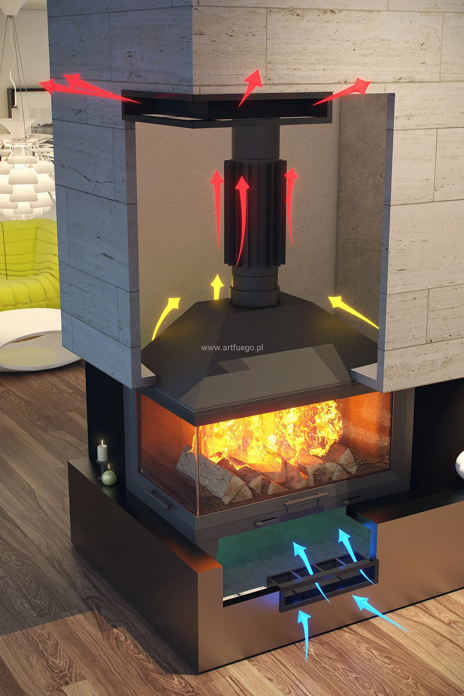 Kratki otwarte - luftowe powinny być montowane ponad wkładem kominkowym z wylotami skierowanymi do dołu (wylot ciepłego powietrza do pomieszczenia) lub pod wkładem kominkowym z wylotem kierowanym ku górze (jako wlot powietrza konwekcyjnego).