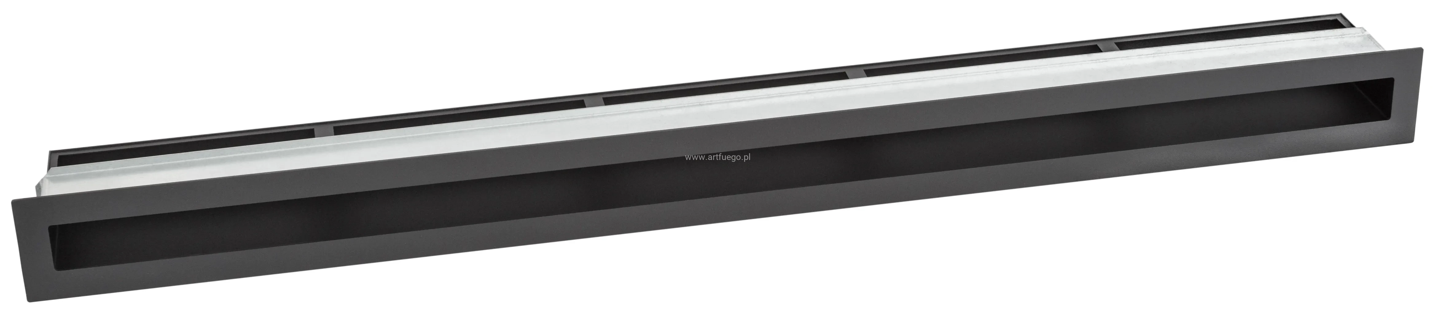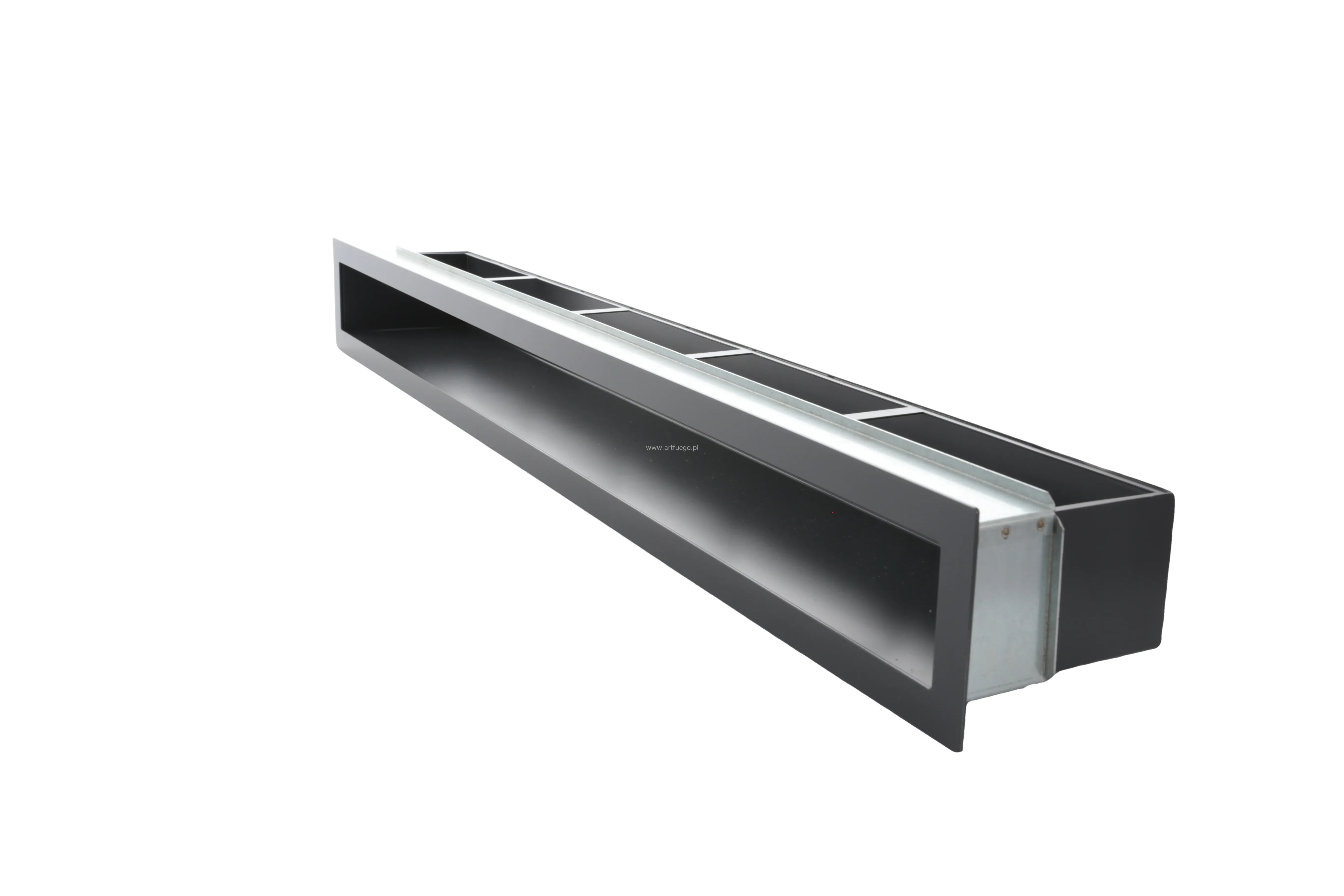 Kratki otwarte ArtFuego PRO-V OPEN - lufty wykonywane są z grubej blachy czarnej malowanej proszkowo (czoło i korpus) oraz w wersji z czołem wykonywanym z blachy chromoniklowej szlifowanej. Czoło kratki stanowi oddzielny element przyłączany następnie do kanału, co daje gwarancję gładkiej, estetycznej powierzchni i braku deformacji. Wszystkie elementy kanału są dopracowane do najdrobniejszego szczegółu, między innymi dlatego by nie znalazła się tam nawet najdrobniejsza szczelina, przez którą można byłoby dostrzec wnętrze kominka. Sposób konstrukcji kratki powoduje, iż straty ciśnienia są minimalne, a kratka jest łatwa do utrzymania w czystości.
