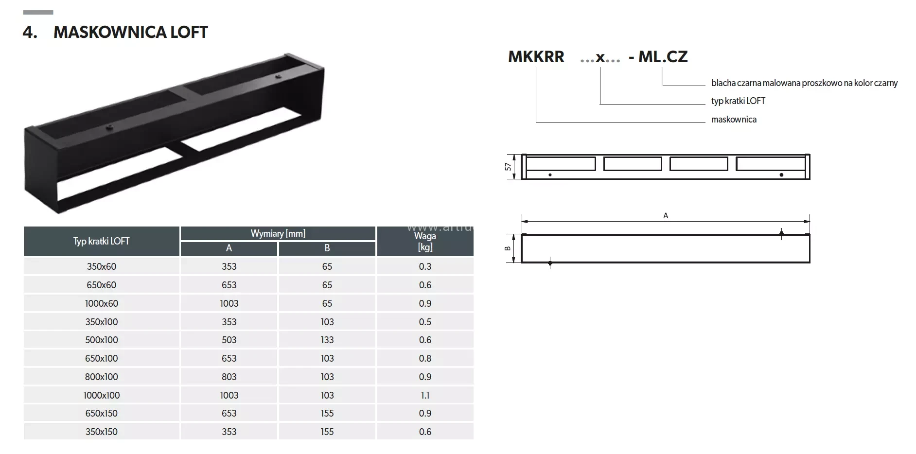 Maskownica uniemożliwia wgląd do wnętrza kominka przez kratkę kominkową LOFT.
