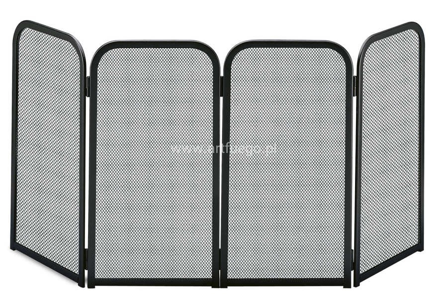 Funkcjonalny parawan – ekran przed kominek stanowi osłonę kominka, zabezpiecza pomieszczenie przed żarem czy iskrami, może być to również bariera dla małych dzieci, czy domowych zwierzaków. Prezentowany model to czteroczęściowy parawan z ruchomymi skrzydłami. Wykonany został ze stali malowanej proszkowo z czarną siatką.